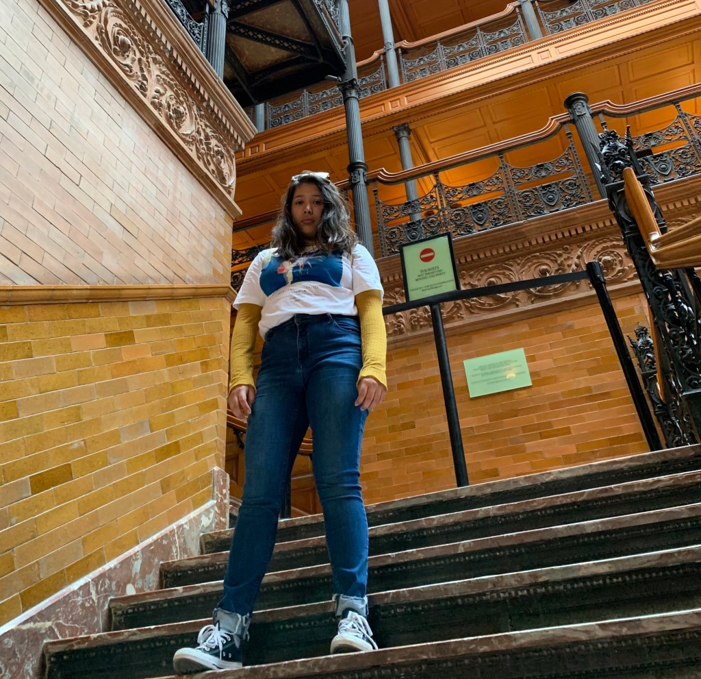 Once I walked in, the first thing I saw was the main staircases and their very detailed ironwork designs. All the intricate details made the stair rails look very pretty along with the wood frame and brick both contrasting the ironwork.
