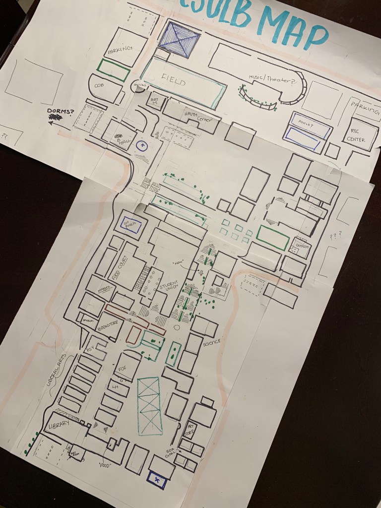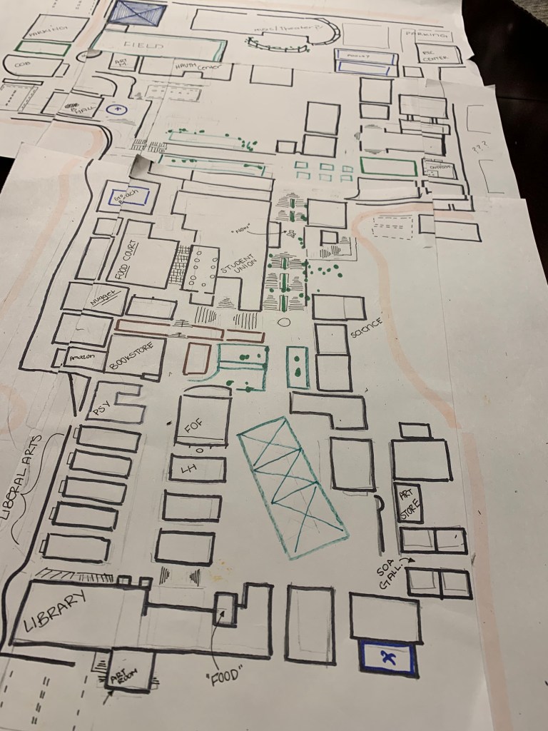 In the end, I honestly remembered a lot more than I thought I would. It was quite easy to remember the outline of the places I visit often, but I had a hard time with other sections such as the side where the Rec Center is, and where the dorms are located. I had an especially hard time figuring the layout of the section behind the student union/behind the “GO Beach” sign, I had to leave a messy gap. However, it was a fun project and challenge to really see how much I actually remember of the campus layout.